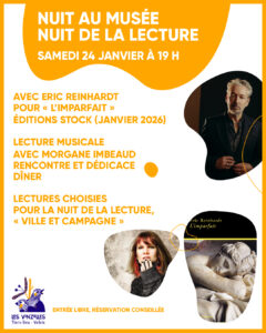 24 janvier Lecture musicale, rencontre, dédicace : Eric Reinhardt « L’imparfait », nuit au musée – nuit de la lecture